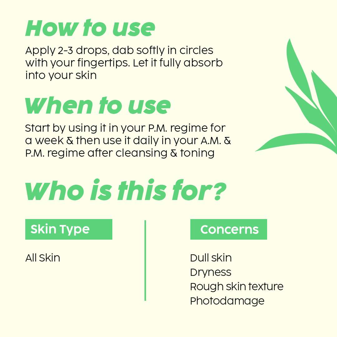 | Ingredients | Serum - Vitamin C 10% (3-o-ethyl ascorbic Acid), Sodium Hyaluronate (5 kDa), Pentavitin 1%, Guava Extract |