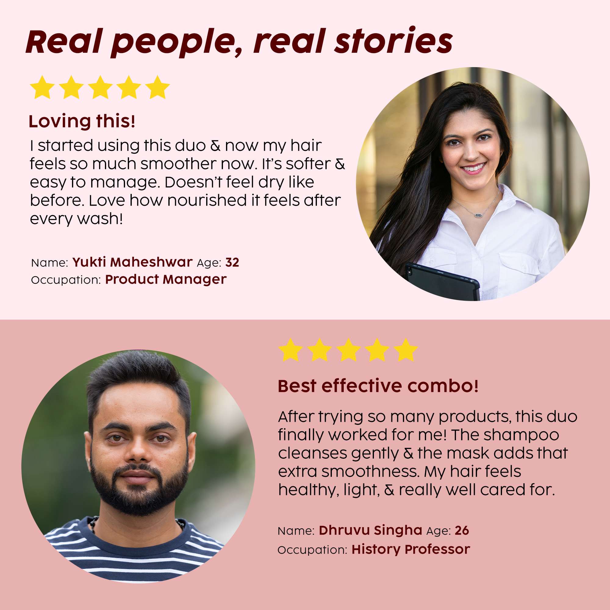 “My hair’s been through heat styling and it shows. This mask makes it feel stronger and smoother over time. Fewer knots, less frizz, and that sleek finish I can never get from regular conditioner alone.”