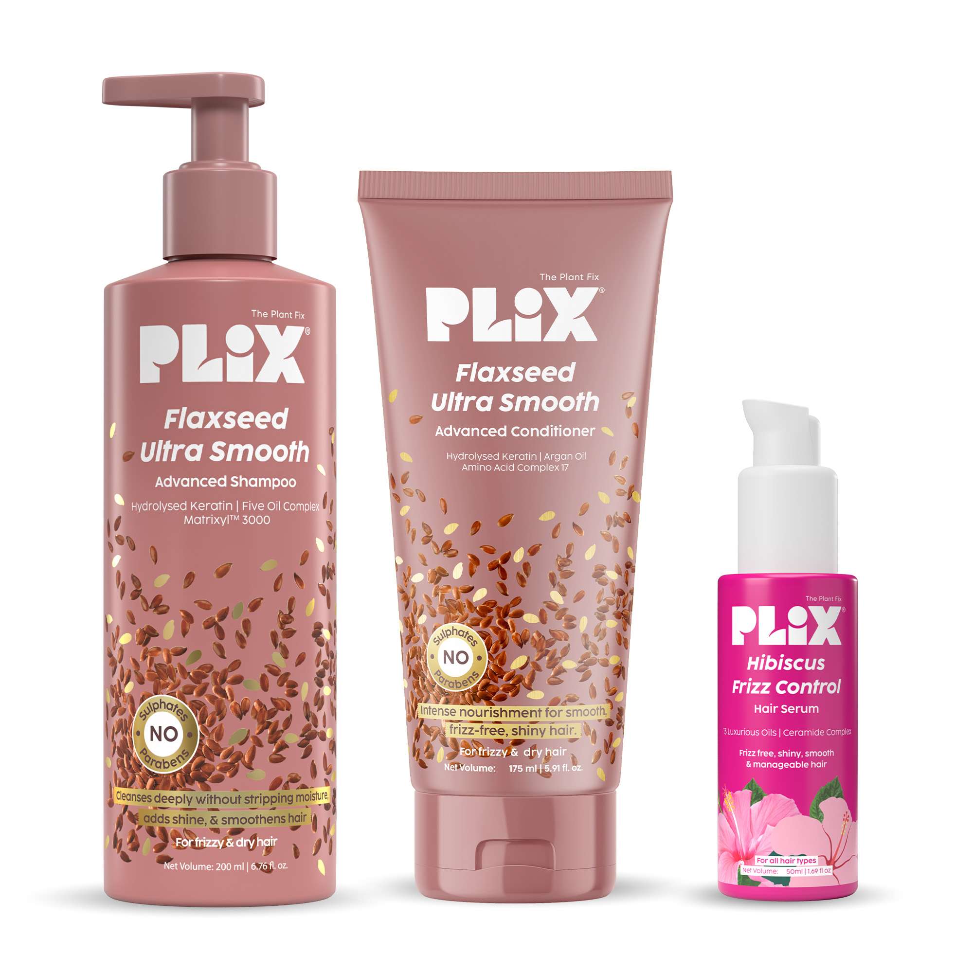 Flaxseed Ultra Smooth Shampoo, Conditioner & Hibiscus Frizz Control Serum