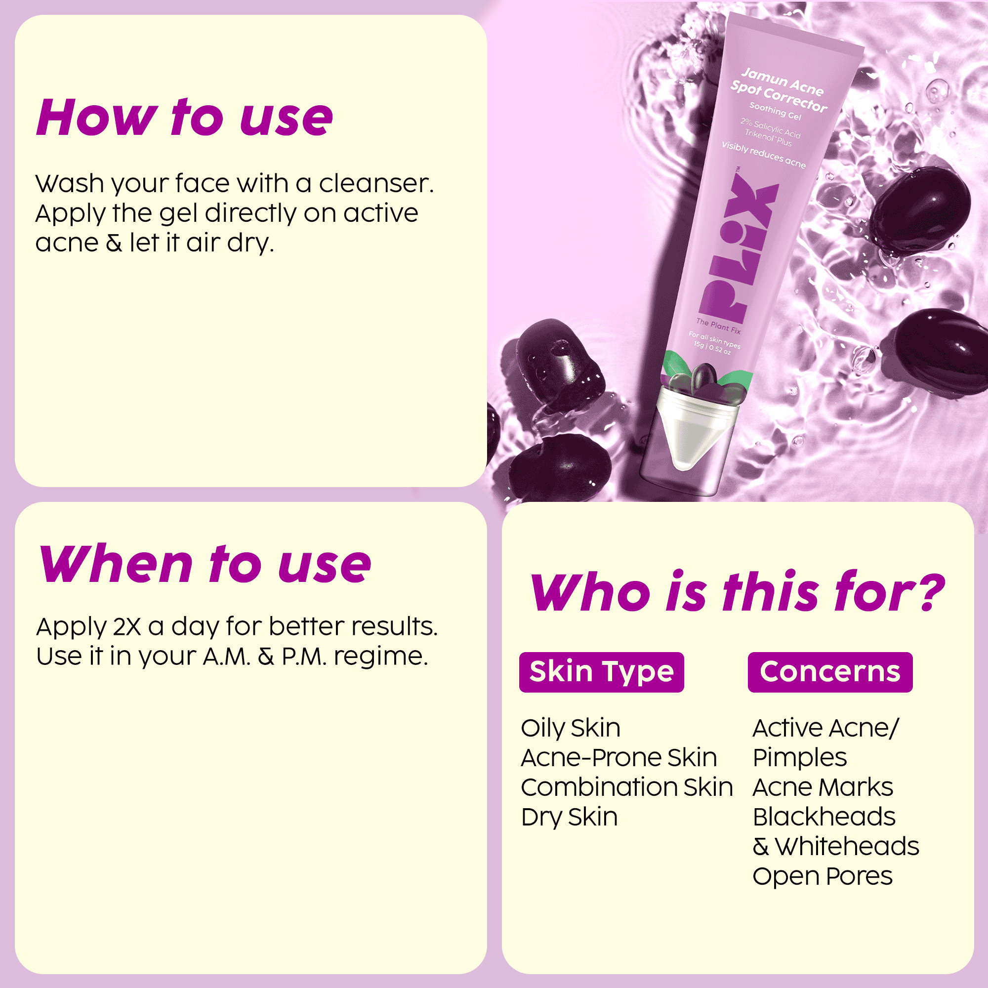 Eliminates acne-causing bacteria, reducing spots & blemishes