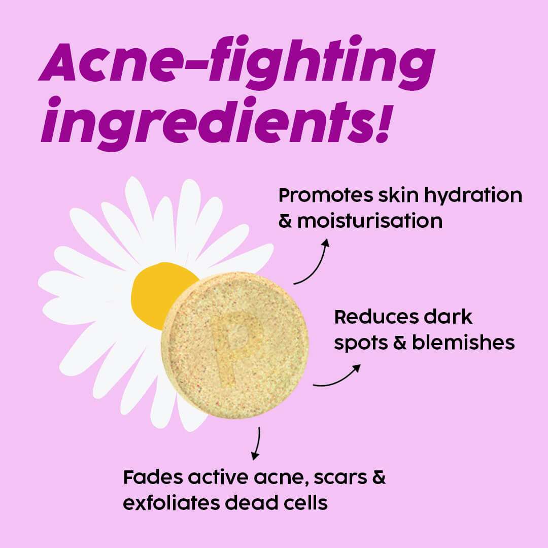Exfoliates & cleanses pre & post-acne skin, reducing marks & bumps