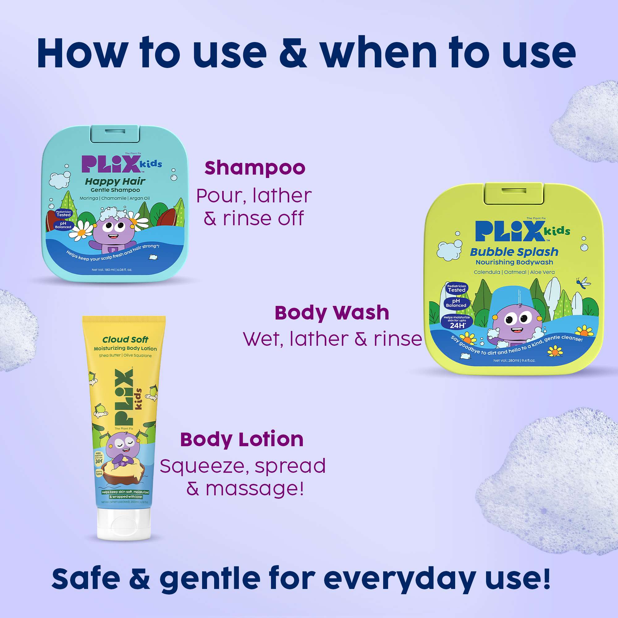 Product Name | Bubble Splash Wash, Happy Hair Shampoo & Cloud Soft Lotion |