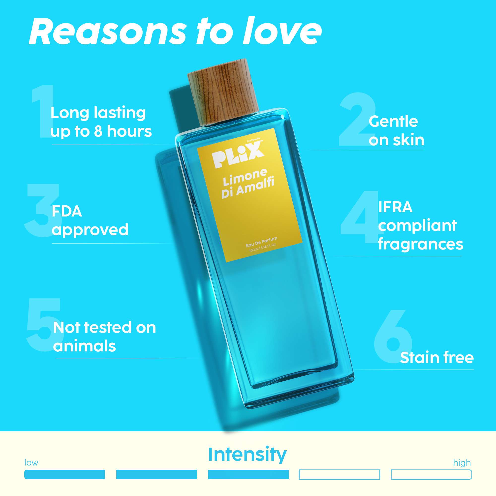 Our fragrance lasts for 8 hours, ensuring long-lasting allure