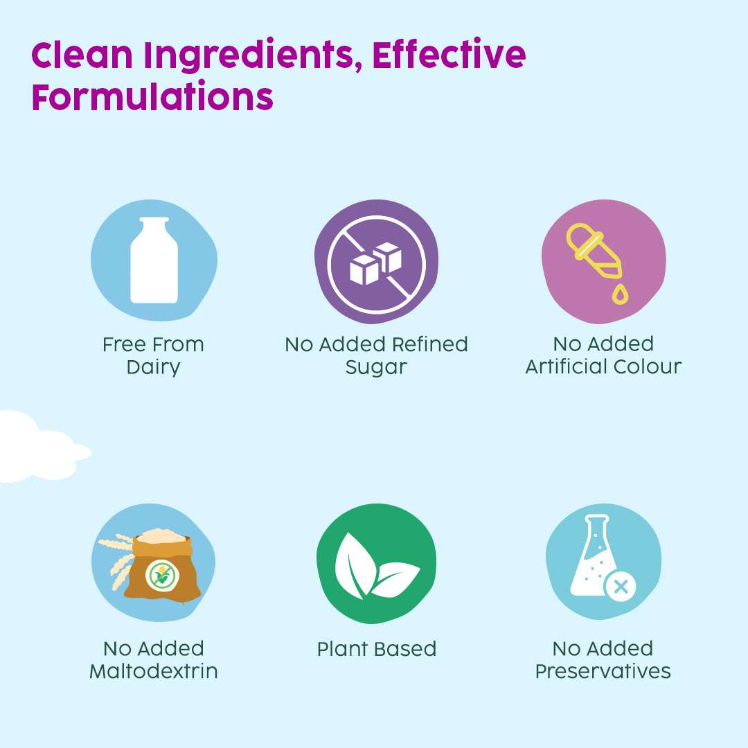 Contains 3 plant based proteins (Peanut, Mung Bean & Almond) to help overall development