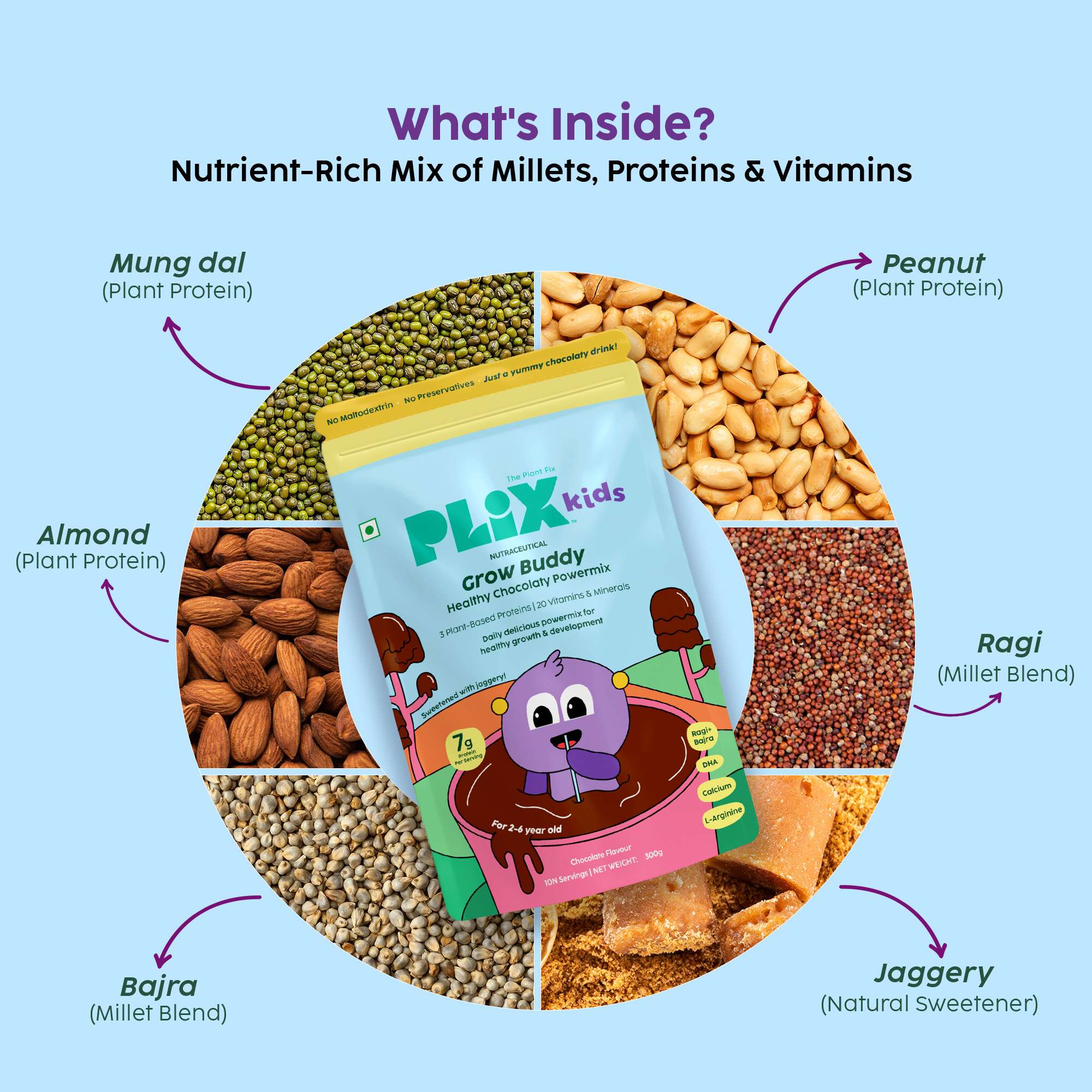 Contains 7g protein, Millets and 20 Vitamins & Minerals