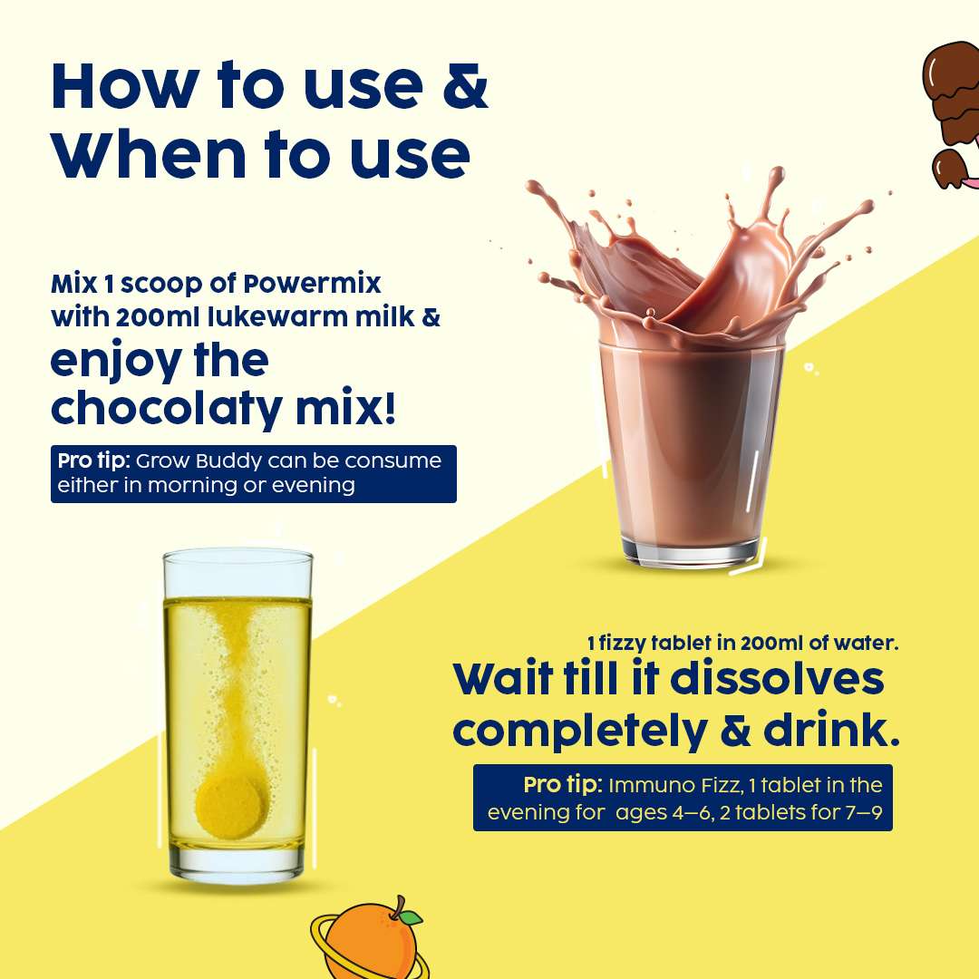 Grow Buddy Powermix is a plant-based protein blend with essential vitamins & minerals that support overall development.