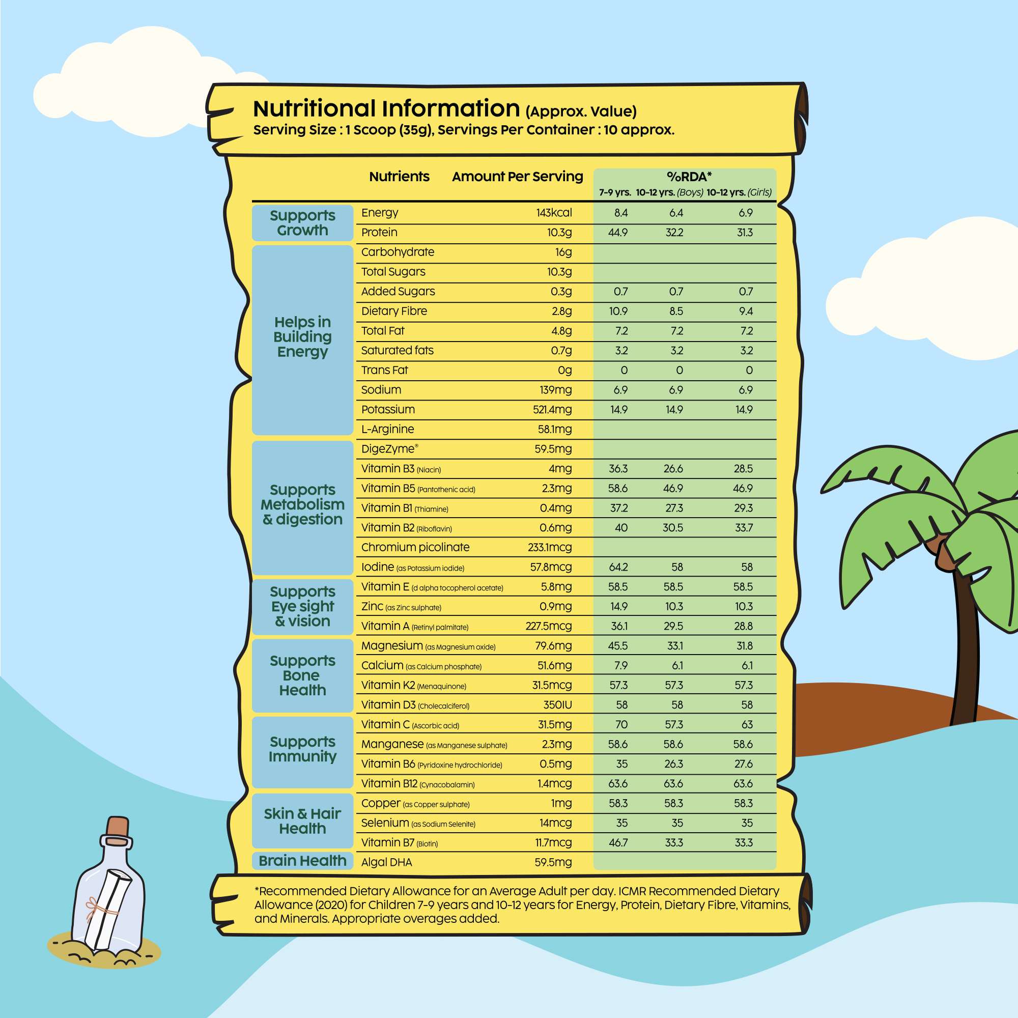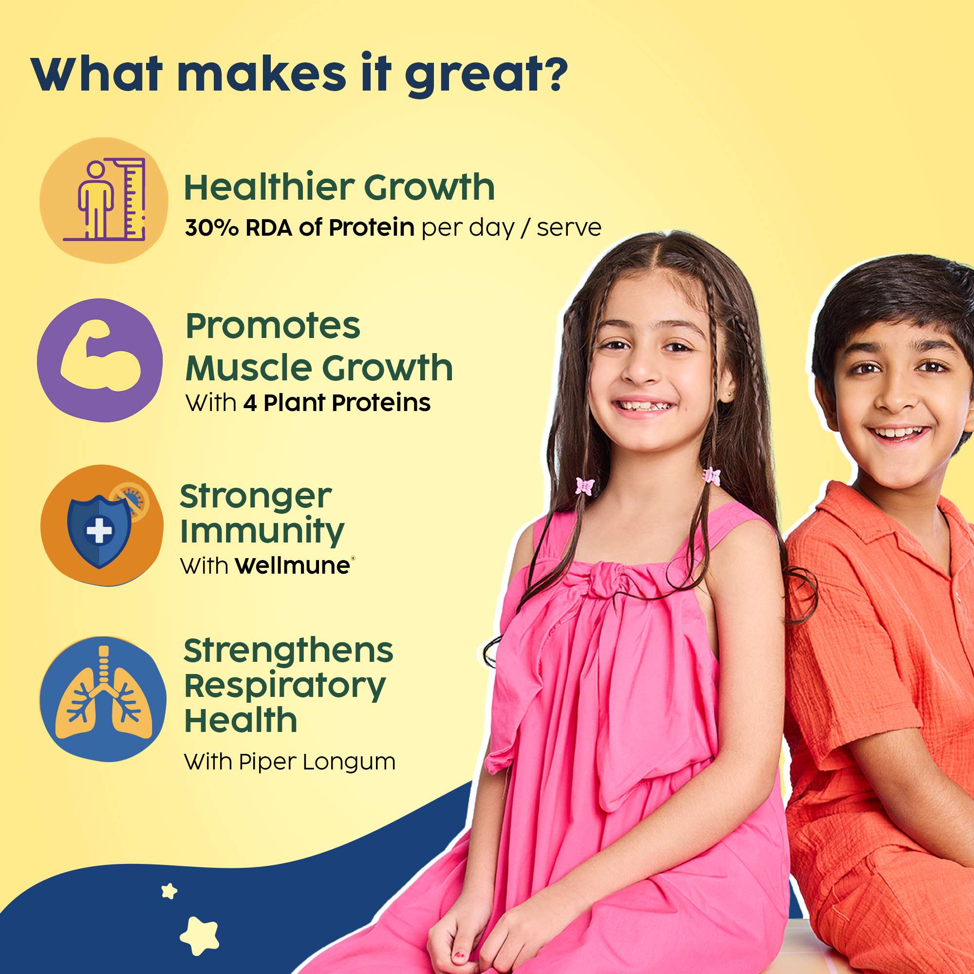 Contains 3 plant based proteins (Peanut, Mung Bean & Almond) to help overall development