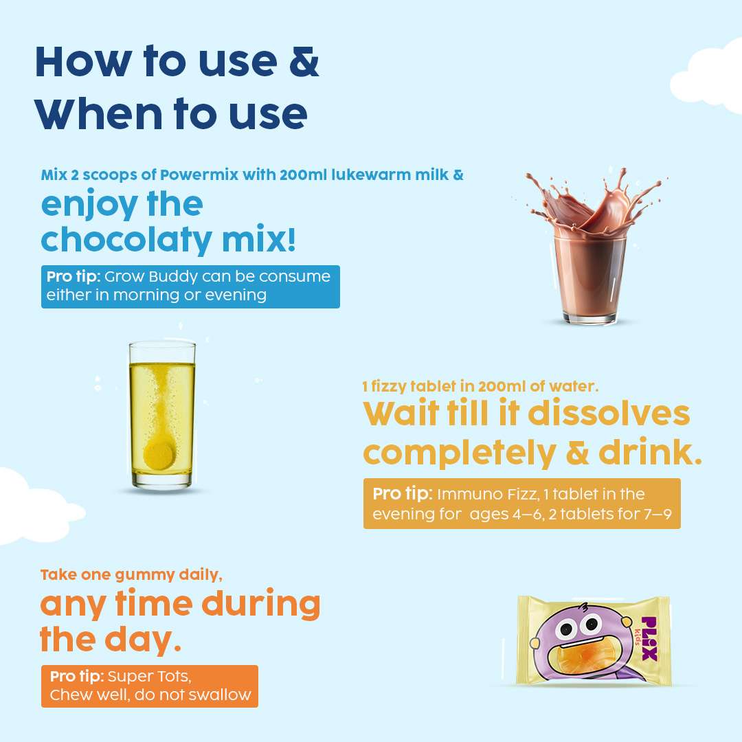 Grow Buddy Powermix is a plant-based protein blend with essential vitamins & minerals that support overall development.