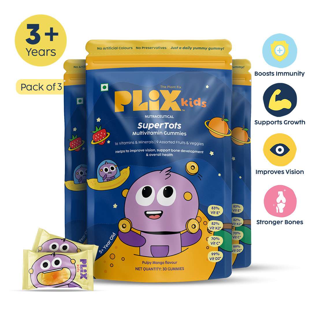 Consume Plix Kids™ SuperTots Multivitamin Gummies daily for stronger immunity.