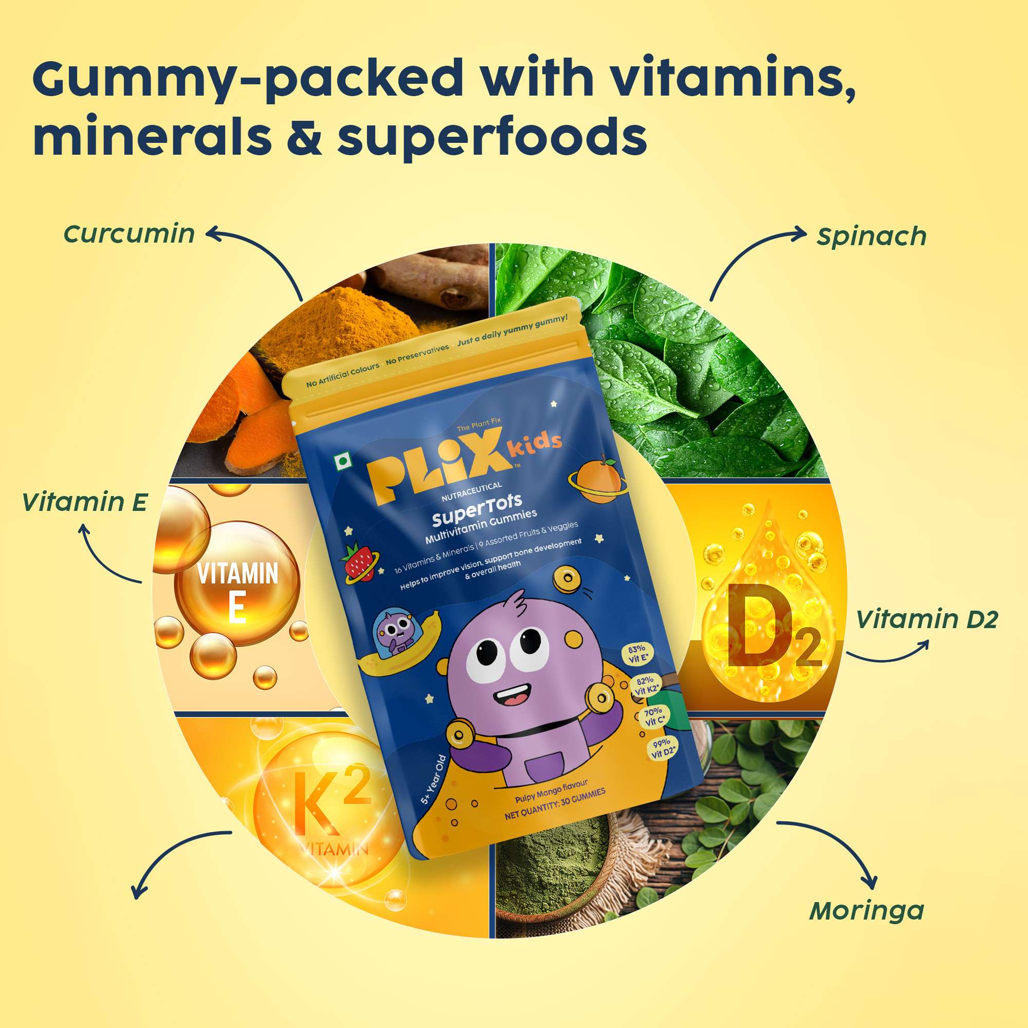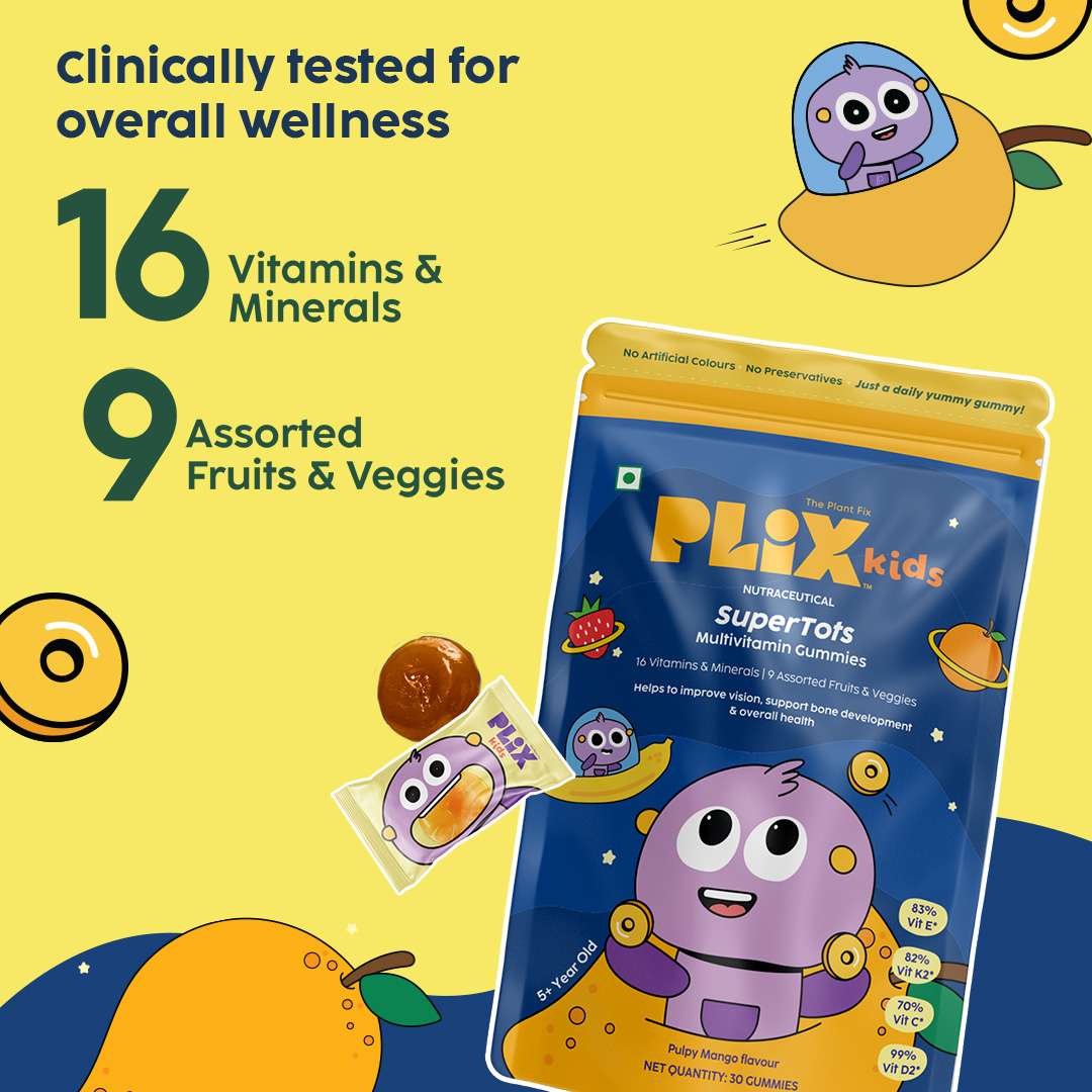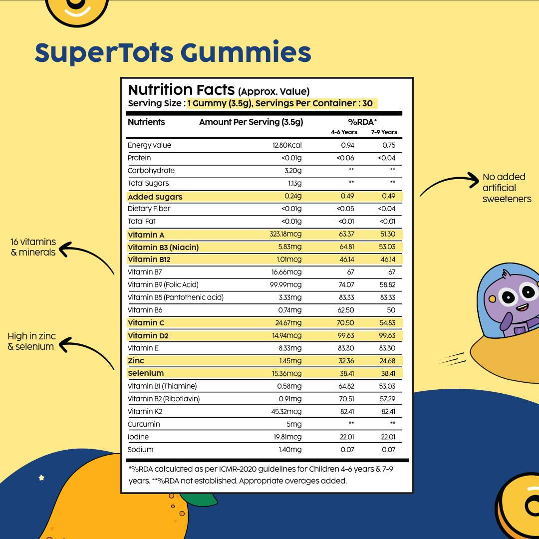 SuperTots Multivitamin Gummies – Mango-flavored with essential vitamins for great vision, bones & immunity!